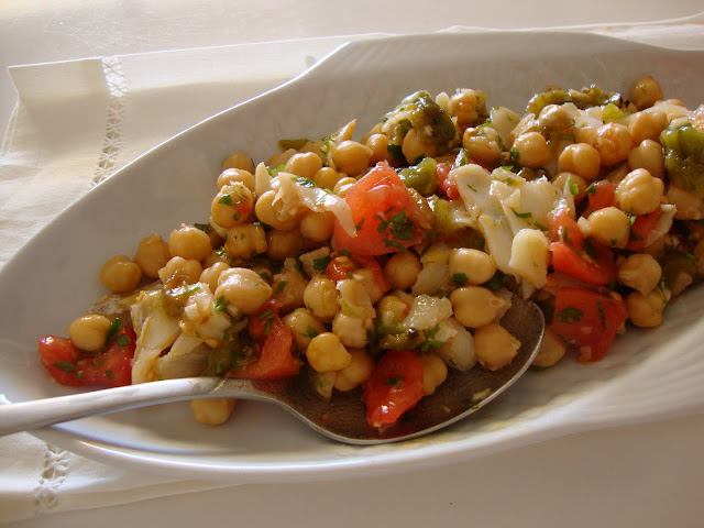 Salada de Grão de Bico com Bacalhau, Tomate e Pimento Assado